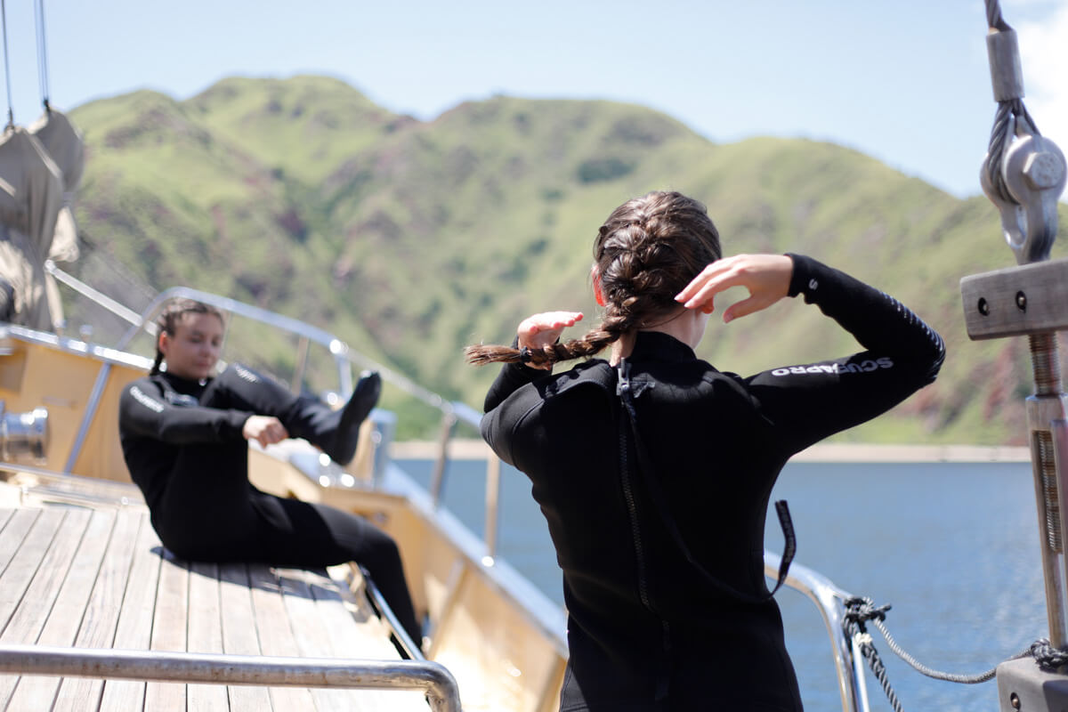 In fact, after a few days, this all boat-situation is becoming empowering. Maybe the blowing wind is what puts me in that « everything is possible » mood. But one thing is for sure, I am determined to get better in what we are all here for : scuba diving of course!